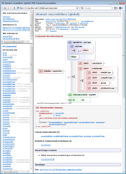This proposed integration would let you generated XML schema documentation (using FlexDoc/XML XSDDoc templates) with the automatic insertion of component diagrams produced by Liquid XML Studio, with the full support of diagram hyperlinks.Click on the screenshots to see a demo preview: