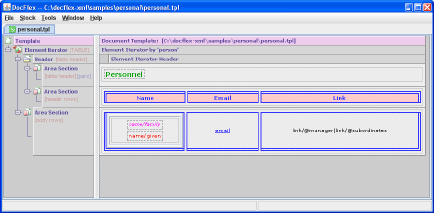 Here is how the corresponding FlexDoc template looks (click on the screenshot to see in full size): Except of a few settings invisible on this screenshot, it is almost all needed to design as a replacement for the XSLT-script above.To learn in every detail how to create and execute this template, please see Creating a Sample Template tutorial.