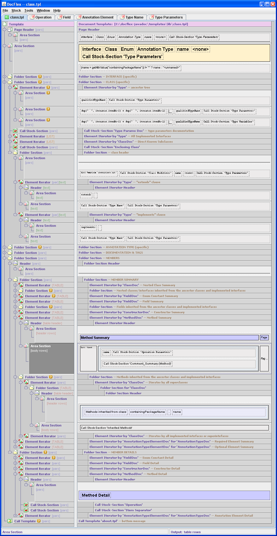 The template interpreter, which is called “DocFlex Doclet”, is the second major part of the DocFlex/Javadoc software. Once launched by Javadoc, the DocFlex Doclet connects to the Doclet API and by interpreting the instructions contained in the specified template generates the output documentation. In that way, each pair {DocFlex Doclet + template set} behaves as a unique full-blown Javadoc doclet.