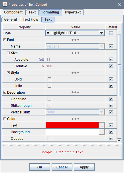 Let's look how template formatting styles are used to generate named CSS rules. Suppose, a component C is assigned with a template formatting style'Highlighted Text'