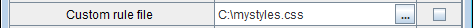 Specify a (CSS) file with custom definitions for some of the automatically generated default and named CSS rules. For more details, please see: How to substitute generated CSS rules with custom ones? |