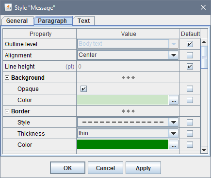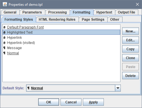 Originally, template formatting styles were modeled on RTF styles. When RTF output is generated, a template formatting style would be rendered with a corresponding RTF style.