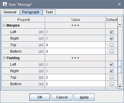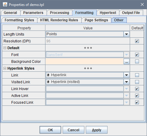 If you need to apply any other default CSS rules, you can do it via CSS pattern file.