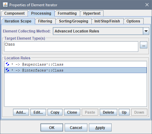 Element Iterator provides two methods to filter the Element Iteration Scope (EIS): Both methods can be used simultaneously. However, since in general these operations are not commutative, the Filtering By Key is always done the first.Filtering By Key